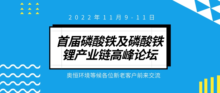 首屆磷酸鐵及磷酸鐵鋰產業鏈高峰論壇奧恒環境等候各位新老客戶前來交流...